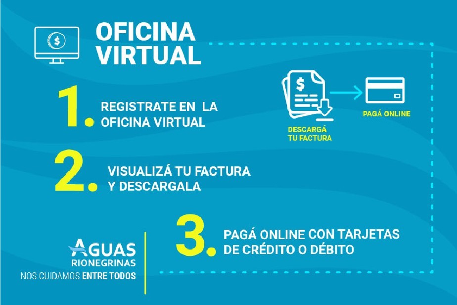 La oficina virtual se une a los canales de comunicación y herramientas dispuestos por la empresa rionegrina para atender dudas y demandas de los usuarios como son la aplicación para celulares de Aguas Rionegrinas, disponible en playstore y la página web, así como también las redes sociales oficiales de Facebook y Twitter.