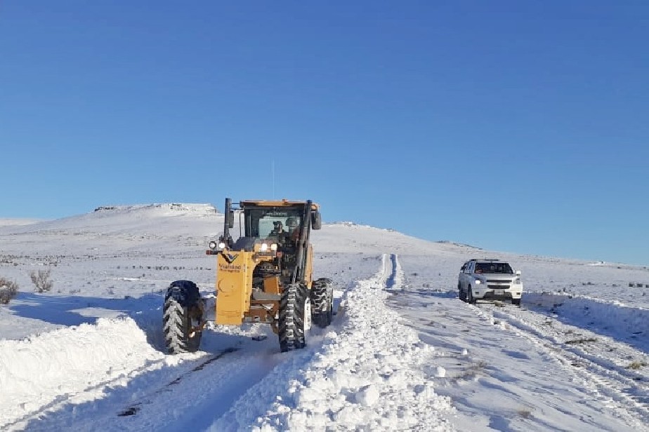 La Ruta 6 en el tramo Puesto Arostegui (San Antonio del Cuy) – Chasico, está intransitable por presencia de acumulación de nieve sobre la calzada.