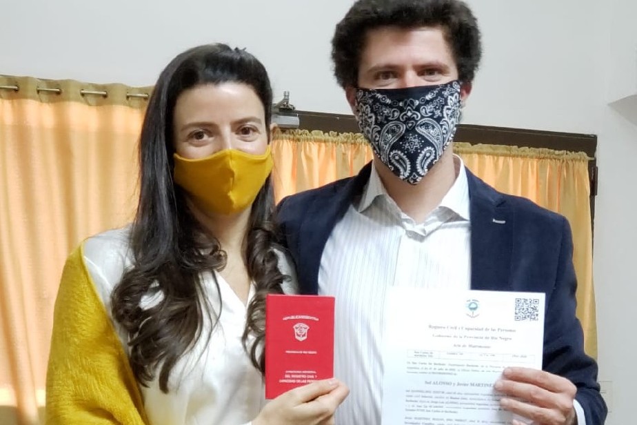 El Registro Civil de Bariloche tuvo su primer casamiento en el marco de la pandemia, con todos los cuidados y protocolos sanitarios dispuestos por las autoridades del ministerio de Salud de Río Negro.